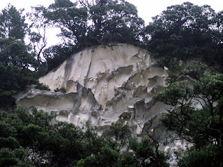 Lovely windy road and nice cool misty weather. Stayed the night at Hahei not far from Hot Water Beach. If you find the right spot at low tide and dig a shallow hole in the sand you can make your own thermal pool. Well low tide was 11.30 pm so I`m wandering around the beach with my torch until after about half an hour my feet are suddenly hot but the waves are still rolling in while I stand there feeling a bit foolish. It was kind of cool (well hot) but possibly not worth the extra bike ride and effort involved. Was talking to someone the next day and it turned out the offshore typhoon meant that the tide was much higher than usual.